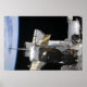 Uma nave espacial Soyuz atracada sobre a nave espacial atracada Atlantis destacada com STS-129.