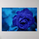 Uma rosa azul profunda contra um fundo enevoado azul claro.