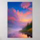 Esta trabalho de arte digital captura a beleza serena de um majestoso pôr do sol sobre um rio calmo que passa pela floresta. O sol que se põe está escondido atrás das nuvens, criando um espantoso conjunto de matizes roxas e cor-de-rosa que enchem o céu. As águas tranquilas do rio e a exuberante vegetação da floresta criam um cenário pacífico e idílico. Esta trabalho de arte capta a essência da beleza e serenidade da natureza.