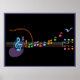 Desenho de guitarra acústica de cor brilhante com notação de desenho animado transformando-se em pássaros e voando das cordas. Camisas, cartas, impressões, presentes.