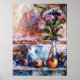 Póster Uma vida tranquila com laranjas e flores rajadas