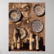 Uma coleção de cerâmica tradicional azul e creme exibida fora de um compro na cidade de Gubbio Umbria Itália