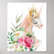 Um unicórnio de aquarela adornado com flores e poster de coroa.