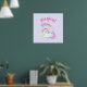 Um poster com um adorável unicórnio branco com mané e conto verde, roxo, amarelo e rosa-claro. Esta criatura mágica está deitada dormindo pacificamente com uma estrela cadente colorida no arco-íris voando sobre sua cabeça. O texto diz "Mágico" em uma fonte de tendência rosa. Púrpura de Pastel.