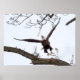 Uma águia-careca estende suas asas maciças e se estica para sair de um membro da árvore.