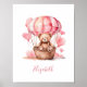 Urso bonito e adorável de pelúcia num balão de ar quente de cor rosa para o berçário ou quarto da sua menina. Disponível em vários tamanhos de 5 x 7 até 24 x 30 polegadas. Personalize-o com seu nome ou qualquer texto.