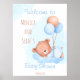 Urso de pelúcia bonitinho de Pastel com chá de fraldas de balões, sinal personalizado de boas-vindas.