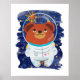 Pôster de Urso Astronauta Flutuando Espaço Estrelas Aquarela