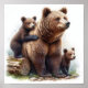 Uma bela representação de um urso pardo e seus dois filhotes, mostrando calor familiar e beleza da natureza. As cores vivas e detalhes requintados destacam os animais em seu hábitat natural.