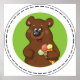 Um urso marrom segurando um sorvete com várias colheres. Esta design parece realmente eficaz nestes Poster