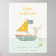 Poster Urso de Pesca Fofo Barco à Vela Monograma Bebê Kid