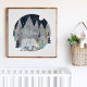 Um ursinho andando nas montanhas floresta sob a lua com o nome do seu menino para o quarto do berçário. Obra original de Caroline Bonne Müller