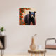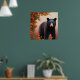 Poster Urso Negro em flores laranja