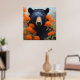 Urso negro bonito em flores laranja Ai Generated Art por minx267