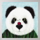 O adorável urso panda fica entre a grama verde, enquanto ele admira seu novo visitante, a joaninha. Wildlife Series #1 Arte original de um Artsy Momma