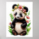 Poster Urso Panda Transparente Com Flores