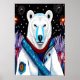 Poster Urso polar de uniforme e fogo de artifício | Arte