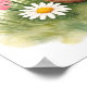 Este adorável poster horizontal apresenta um ursinho de peluche aquoso e aquoso sentado com bonito flores margaridas.