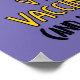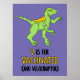 Deixe o mundo saber que você está vacinado com este dinossauro feroz. Este poster apresenta uma ilustração de um velociraptor em verde-claro com uma bandagem no braço onde ele tirou a foto acima da mensagem "V é para Vacinado (e Velociraptor)", tudo colocado sobre um fundo roxo.