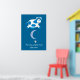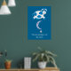 Lindo pôster azul infantil personalizável "A vaca pulou sobre a lua" com borda azul clara e uma linda vaca de desenho animado azul e branca sorrindo e uma lua e estrela azuis felizes. Um presente doce e adorável e divertido para meninos jovens. Ficaria lindo no berçário de um bebê. Se precisar de ajuda para personalizar seu produto, entre em contato comigo através da minha loja e ficarei feliz em ajudar. Por favor, visite minha loja Molly Sky Designs para muitas ilustrações divertidas, fofas e retrô.