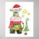 Esta é uma pintura mestiça original de uma vaca caprichosa de Natal num chapéu de Papai Noel.
