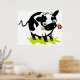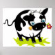 Uma vaca branca e negra adorável com uma flor na boca. Esta design parece realmente eficaz nestes Poster