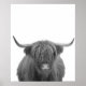 Poster Vaca das Terras Altas Escócia Preta Branca Rústica