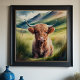 Mola d'água Pintando Vaca do Bebê Highland Sentada em montanhas de campo A proporção é 1:1. Ele foi projetado para ser impresso como 12x12, 16x16, 20x20
