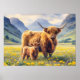 Celebrar a beleza pastoral com a Vaca Highland e o Poster das Coxas de Vitelo. Apresentando uma cena serena de uma vaca em Highland e um bezerro em meio às suas ampolas, esta poster captura o charme rústico da vida rural. Perfeito por adicionar um toque de elegância natural à vossa decoração, ideal para aqueles que apreciam a beleza das paisagens rurais e do gado das Terras Altas.