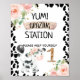 Vaca Floral Cor-de-rosa com Festa de aniversário-Vaca Sinal de Impressão-Vaca Sinal de festa de aniversário-Vaca-branca com cartaz e vaca-branca, arranjos florais cor-de-rosa, balão preto e branco e padrão de impressão de vaca. Este sinal de festa de aniversário de vaca é ideal como um sinal de mesa para a festa de aniversário de uma moça temática de vaca. O número de brilho dourado é removível.
