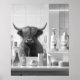 "arte do banheiro de vaca da Highland", "poster da rocha escocesa" "impressão animal de produtos para cabelos", "touro com chifres fofinhos", "cabeleireiro com estilo de cabeleireiro", "humor humorístico engraçado", "decoração de cabeleireiro bardo", "fotografia realista de animais", "olhando na foto do espelho", "Highland impressões de fotos"