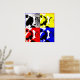 Poster divertida de 4 vacas em ciano, magenta, amarelo e preto