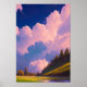 Poster Vale Verde Sob um Céu Rosa e Roxo