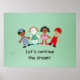 Crianças multiculturais de mãos dadas, com mensagem: o Vamos continua o sonho! Perfeito na sala de aula do mês de história negra.