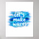 O vamos faz as ondas citar o poster com texto em uma decoração de design pintada azul e turquesa para casa ou escritório. Arte copyright Ann Powell todos os direitos reservados.
