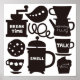 Poster # VAMOS ENCONTRAR PARA CAFÉ Eu projetei vários objetos e palavras relacionados ao café