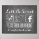 Vamos Ser Sinal de Hashtag de Casamento Social no fundo do quadro. Ajude a capturar fotos de todos os seus convidados no seu grande dia usando este sinal de hashtag. Você pode alterar o tamanho deste sinal e ele parece excelente como está ou enquadrado. Todo texto é completamente personalizável e pode ser usado em qualquer ocasião.