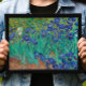 Poster Van Gogh "Irises". Arte do impressionismo floral azul.