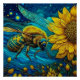 Que 20 seja o Dia Mundial da Abelha. Design apresenta abelhas e girassol do estilo noturno de Van Gogh Starry.