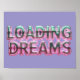 The shiny, metallic finish of the letters, with their light reflections, brings the design to life. Whether you're looking for an original gift for a friend who loves retro video games, synthwave music, or digital art, or just want to express your own unique style, this "Loading Dreams" design is the perfect choice. It's more than just a graphic; It's a window into a world where past and future collide in a harmony of neon colors and visual glitches.