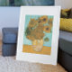 Vase com Doze Girassóis (1888) de Van Gogh é uma pintura floral de Apos impressionismo fino e de vida. Faz parte de uma série de vida estática de várias pinturas semelhantes com um buquê de flores de jardim em um vaso. A série inteira mostra girassóis em todos os palcos da vida, de totalmente florescente a murchando. Sobre o artista: Vincent Willem van Gogh (1853-1890) era um pintor Post Impressionista cujo trabalho era mais notável por sua beleza áspera, honestidade emocional e cor ousada.