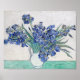 Poster de belas artes da pintura poste-impressionista Vase com irlandeses (1890) do artista holandês Vincent Van Gogh. Uma vida estática de belos irlandeses num jarro branco contra um fundo branco.