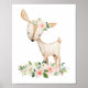 Poster Veado, Animais Da Floresta, Boho, Flores Rosa