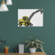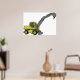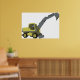 Um veículo de construção verde com um braço de escavação estendido. Esta design parece realmente eficaz nestes Poster