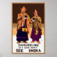 Vintage Veja o poster de viagens da Índia promovendo Darjeeling mostrando músicos em vestidos exóticos "Em uma dança de Lama."