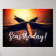 Vê o dia lindo Poster de uma foto de praia de estrelas-do-sol. Personalize com sua própria citação inspiradora opcionalmente. decoração de na moda para casa de praia ou casa de férias perto do oceano. Starfish na areia da praia refletindo o sol de verão.