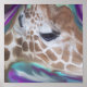 Uma imagem pessoal e de perto do perfil de um costume girafa desenhado em poster por Riches de Sua Fotografia Glória