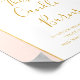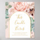 Este sinal de vela de jardim floral cor-de-rosa pastel é perfeito para o seu casamento botânico boho, rosa na primavera. O design apresenta uma moldura de folha dourada acompanhada por uma simples rosa de pêssego champanhe em aquarela, folhagem de eucalipto verde sage minimalista e uma flor silvestre de papoula cor-de-coral neutra, moderna e única. O design é luxuoso, ideal para um casamento clássico, sofisticado e delicadamente chique no verão, outono ou inverno. Por favor, sinta-se à vontade para entrar em contato conosco com quaisquer perguntas sobre o design do produto; votos de felicidade!