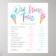 Tema de diversão sorvete Velho Esposas Palavras de jogos para o seu gênero revelam uma festa com ilustração aquarela de sorvetes cor-de-rosa e azuis em cones de waffle.