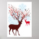 Veado de Natal com galhos de árvores, pássaros e flocos de neve